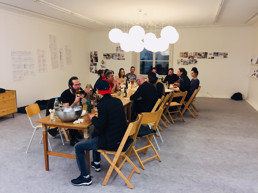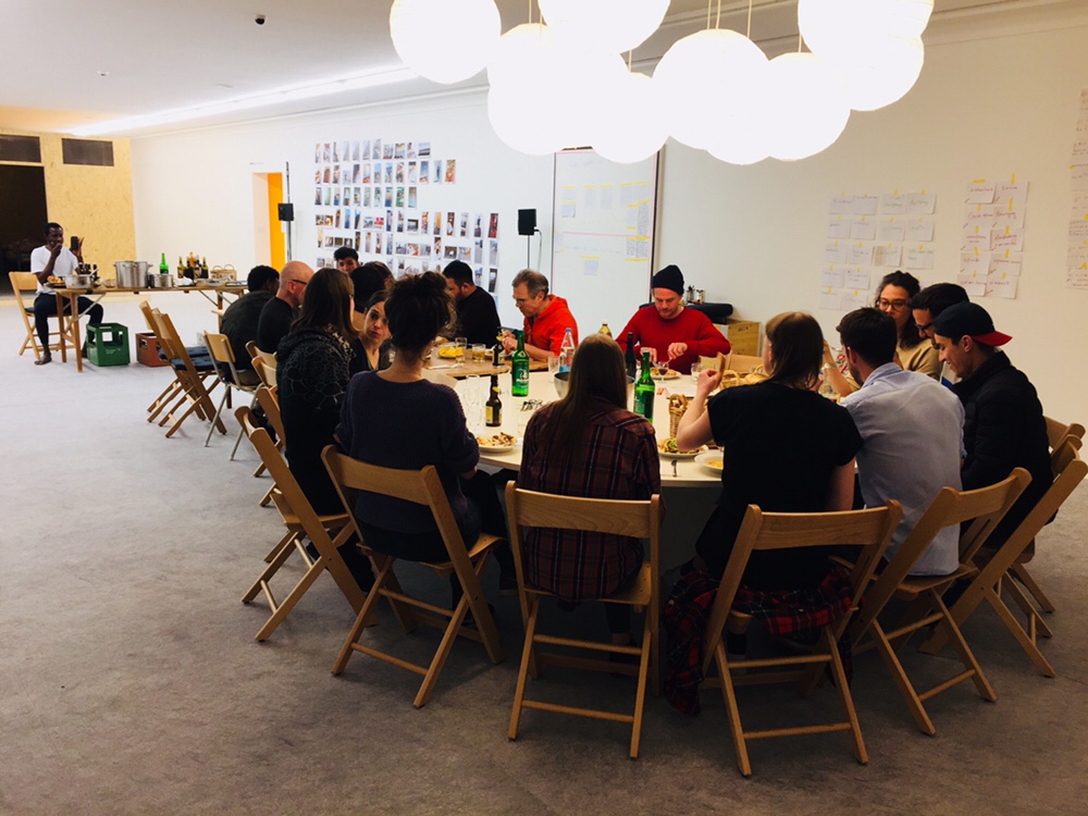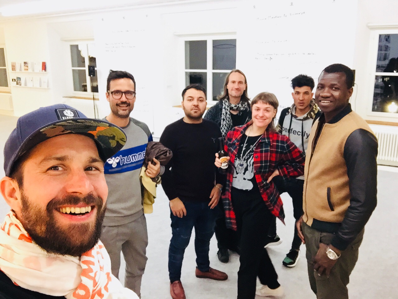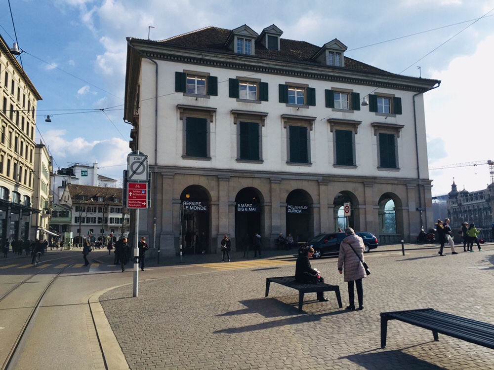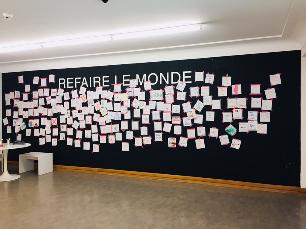 “Rebuild the world” or something like that! In the Helmhaus Zürich there is an exhibition you must see! We also gave a wall there “Mapping the refugee life”, it is on the second floor! Invited by Raphael Perrett! Thanks! On Sunday, there was a lovely dinner in the museum 🙂