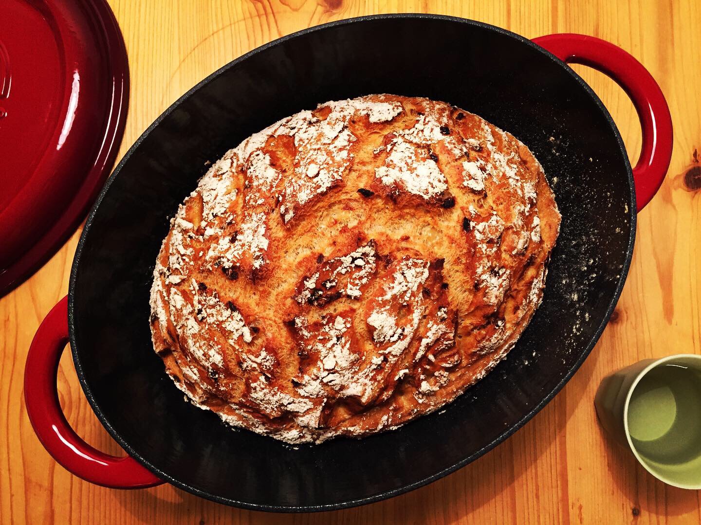 – before your start kneading the dough, you can heat up the oven to 250 C (oven on circulation) and you can put a cast iron pot in… heat up the pot